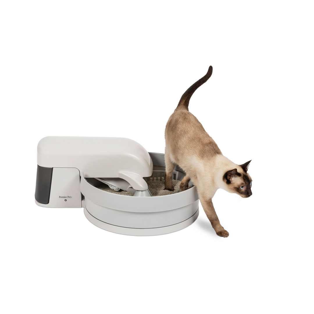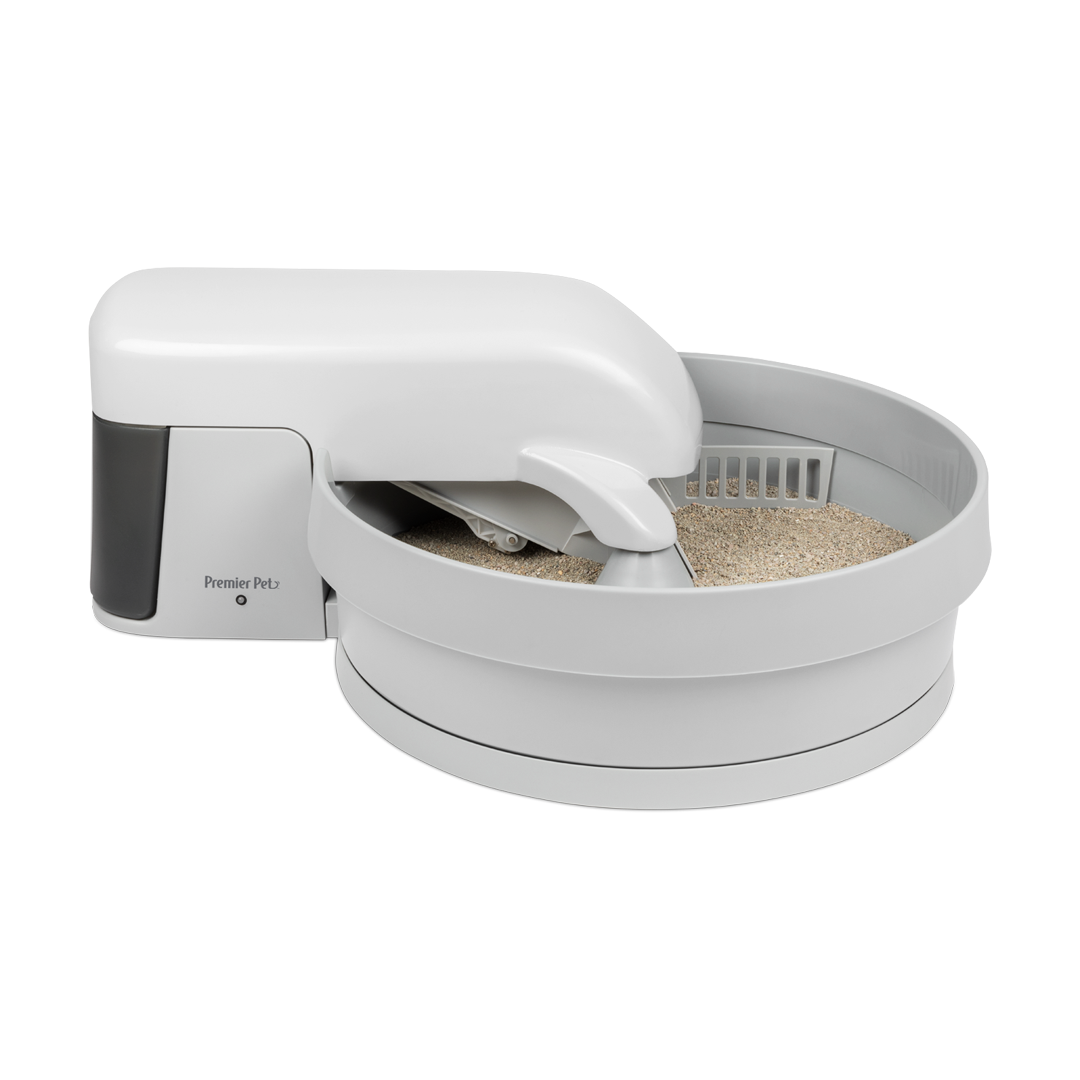 The Premier Pet® Auto-Clean Litter Box System keeps you and your cat happy with a clean litter box that doesn’t need to be scooped. Simply fill with clumping clay litter, line the waste bin with any bag, and plug in the box. The litter filled bowl will slowly turn, bringing waste to the conveyor belt that will transfer it from the bowl into the waste bin for an easy, mess-free disposal. An activated carbon filter absorbs the odors of the contained waste to provide an added layer of odor control. Top off the bowl with extra litter as needed and replace the litter at least once a month to keep your cat happy and to maintain a fresh smelling home.