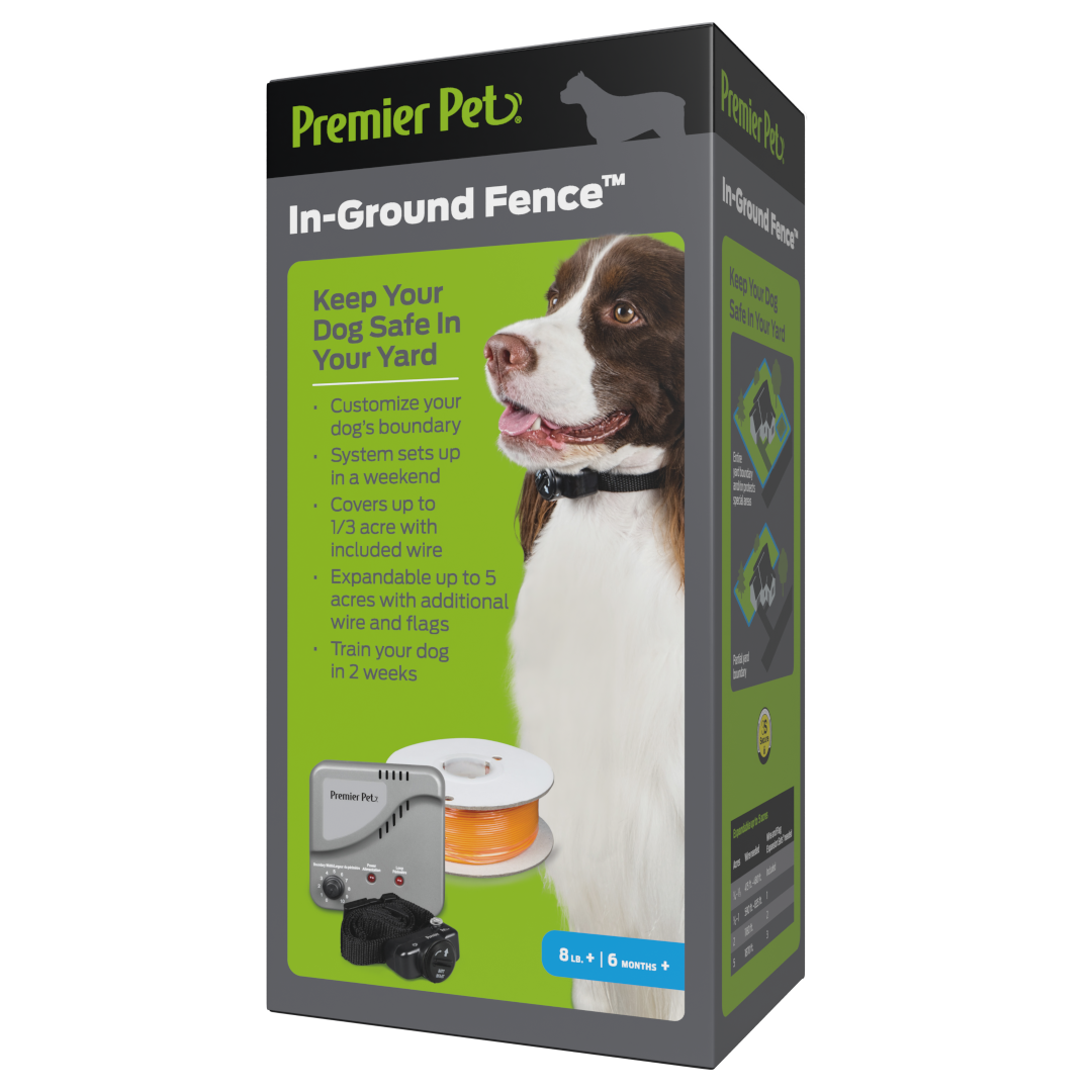 The Premier Pet® In-Ground Fence keeps your dog safely in your yard with a customizable barrier that includes coverage up to 1/3 acre and is expandable up to 5 acres with the Premier Pet® Wire and Flag Expansion Set (GRFA-500). The barrier can be customized to contain your dog in your entire yard, a partial area of your yard, or to prevent access to certain areas, such as a garden or pool. The included waterproof receiver collar has a nylon strap that is adjustable up to 26”, making it a great fit for both smaller and larger dogs. A low battery indicator on the collar will alert you when the collar battery (GAC11-16351) should be replaced. The collar has 1 level of tone only for training and 4 adjustable levels of static correction so that you are able to choose which level works best for your dog. A safety time-out feature will stop correcting after 30 seconds should your dog get outside of the boundary zone. You also have the option of adding an unlimited number of dogs to the system with the Premier Pet In-Ground Add-A-Dog collar (GIG00-16920). Give your dog freedom to play and yourself peace of mind with the Premier Pet In-Ground Fence!