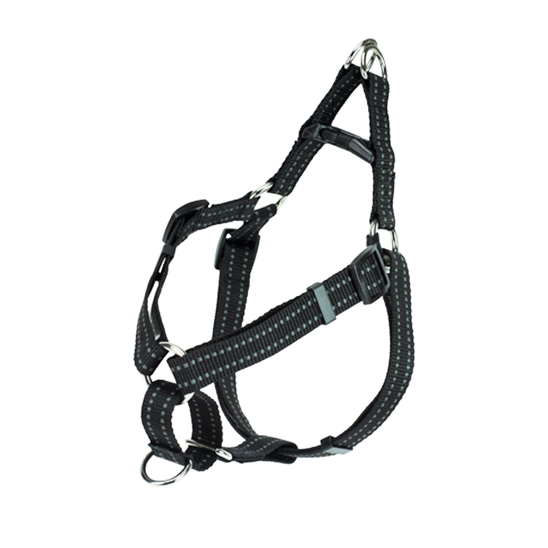 The Premier Pet® Step-In Harness is easy to fit and keeps your dog secure during all your walking adventures. Choose the best size for your dog by measuring the widest part of his/her rib cage and easily create a custom fit with the three adjustment points. With two leash attachment points, you have a variety of walking options including a standard harness (clip in the back), a no pull harness (clip in the front), and a control harness (both clips) when used with the Premier Pet Multi-Functional Leash. This easy-to-use harness provides safety, comfort, and control during any outing with your dog.